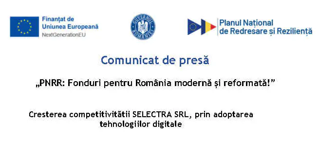 » Citește tot articolul pe: https://ziarobiectiv.ro/pnrr-fonduri-pentru-romania-moderna-ci-reformata-cresterea-competitivitatii-selectra-srl-prin-adoptarea-tehnologiilor-digitale/